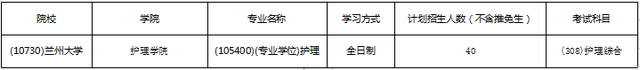 兰州大学护理专硕拟招生40人。