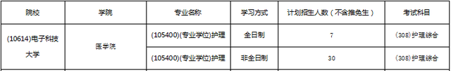 电子科技大学护理学拟招生7人,护理专硕拟招生30人。