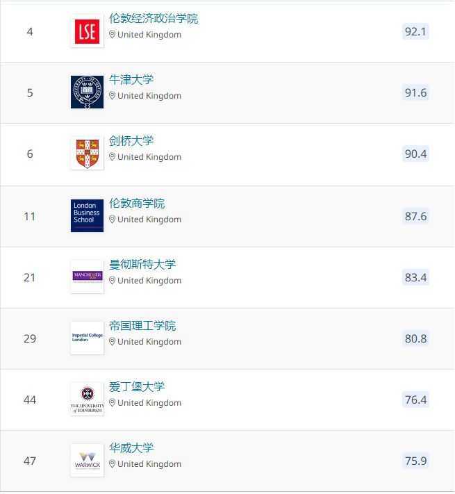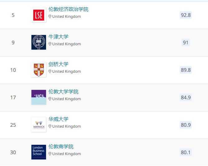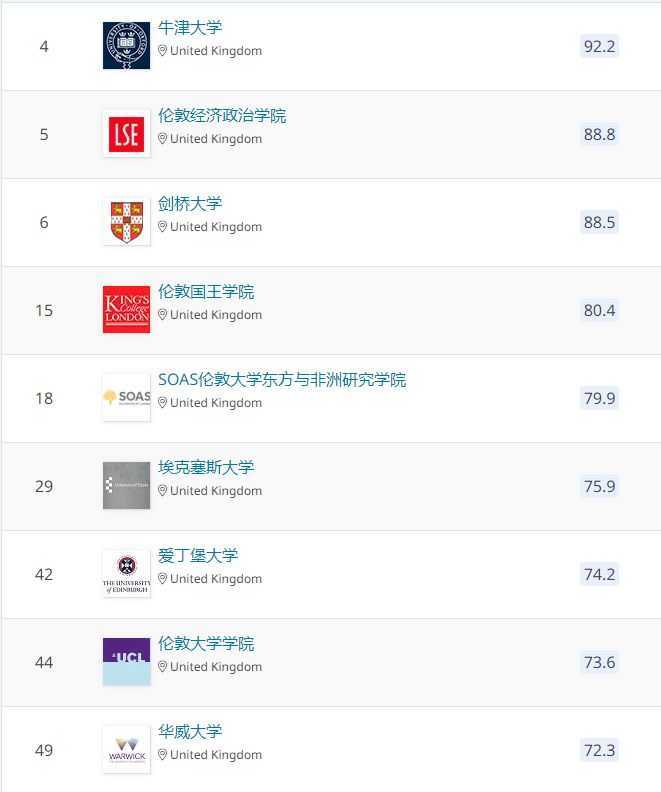 社会科学与管理领域世界前十中美国处于垄断地位,而上榜的三所英国大学中,杀出LSE敢于排名世界第一的哈佛大学叫嚣,可歌可泣!