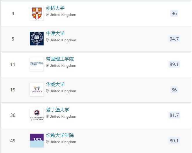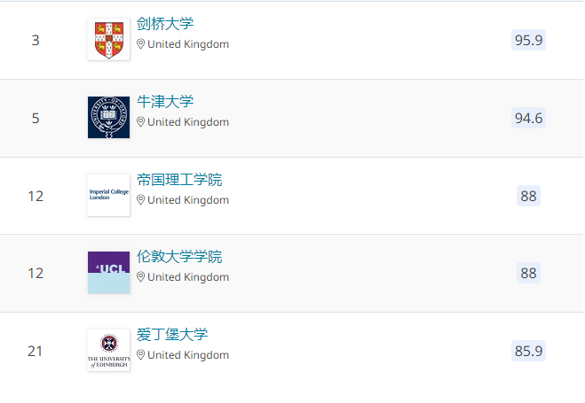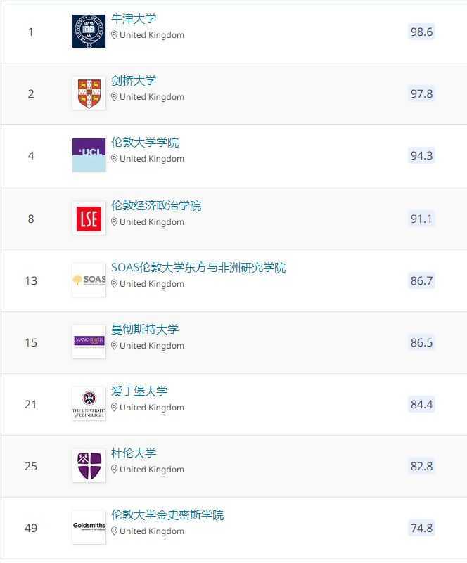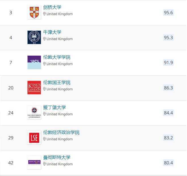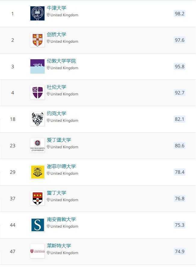 这个艺术与人文学科排行榜美国虽然强势得过于可拍,但是“唯一幸存”的两所英国顶尖名校牛津和剑桥大学排名也很给力,分别霸占了世界第一和世界第三的位置,不得不服!
