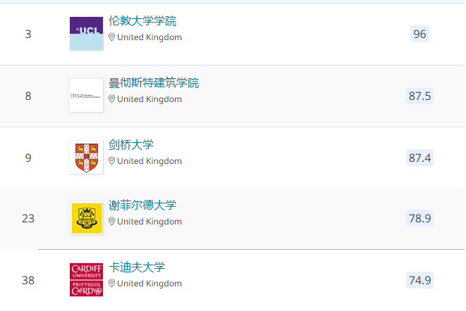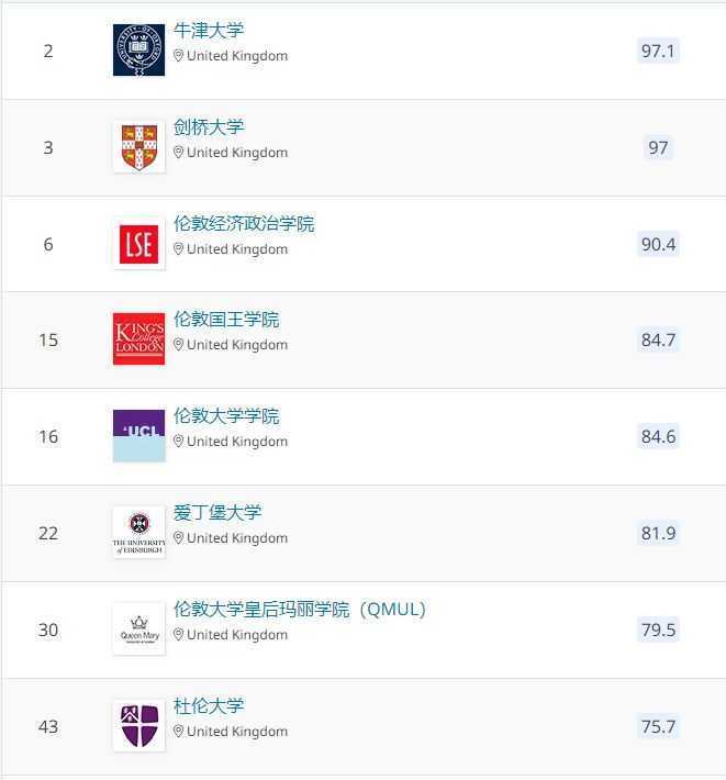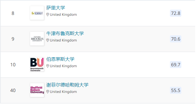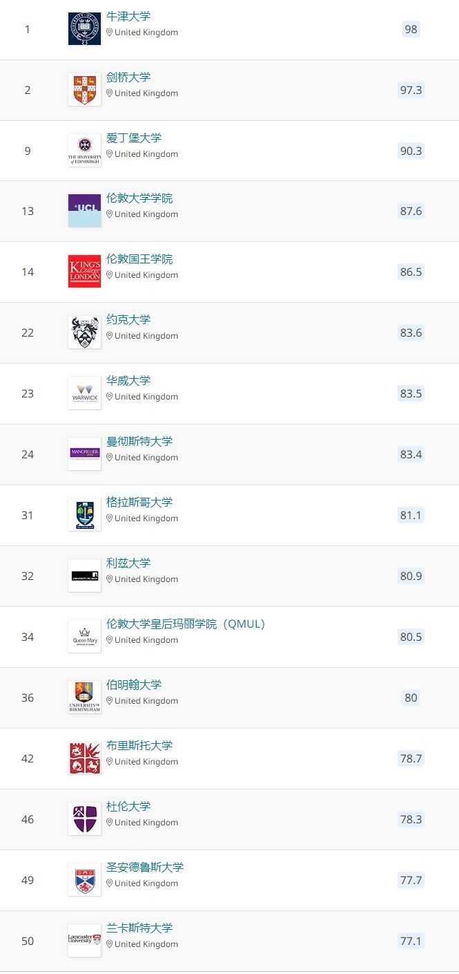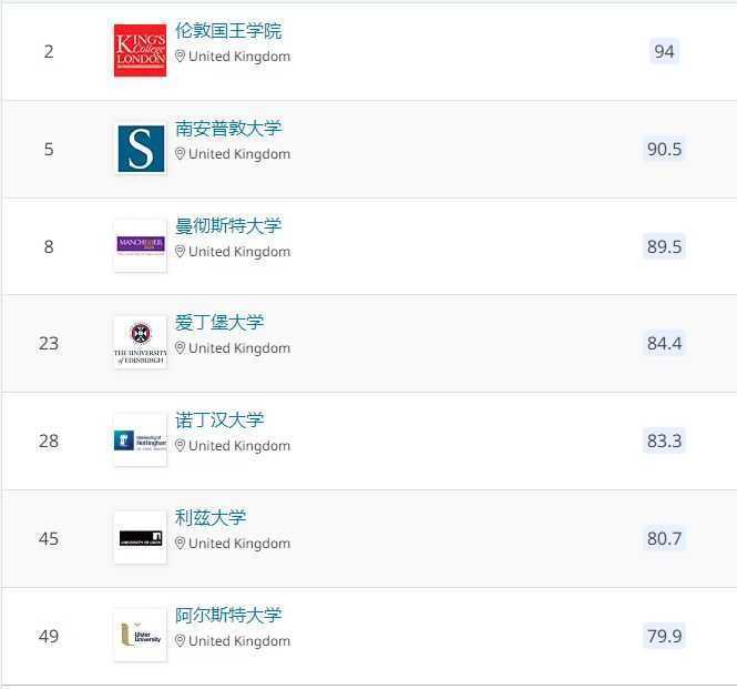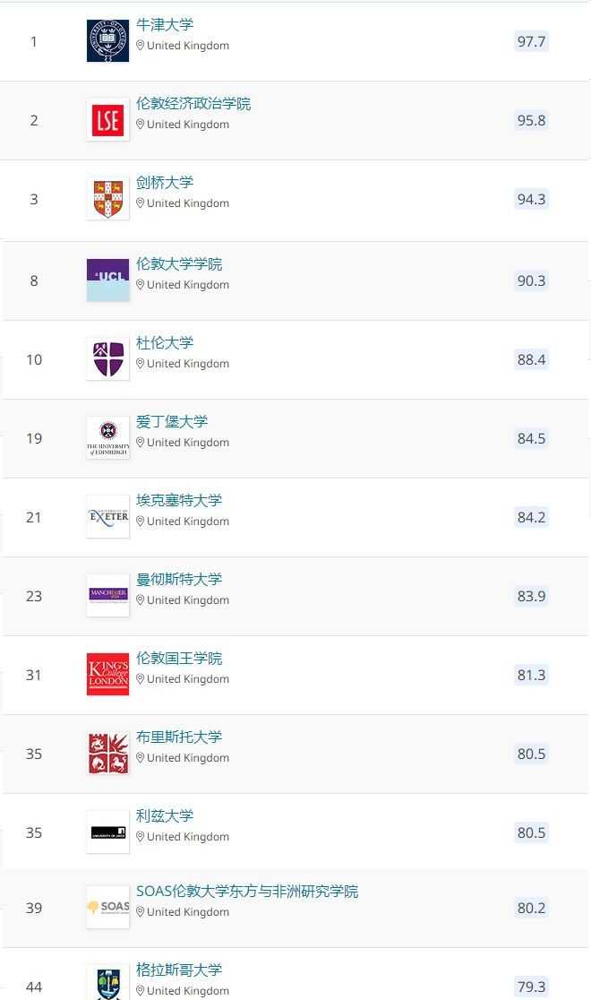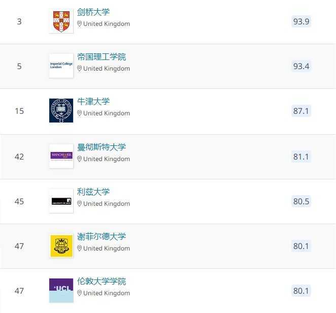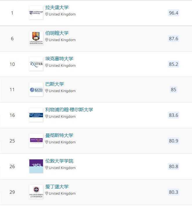 除此以外,还有更多热门学科英国大学也名列前茅——