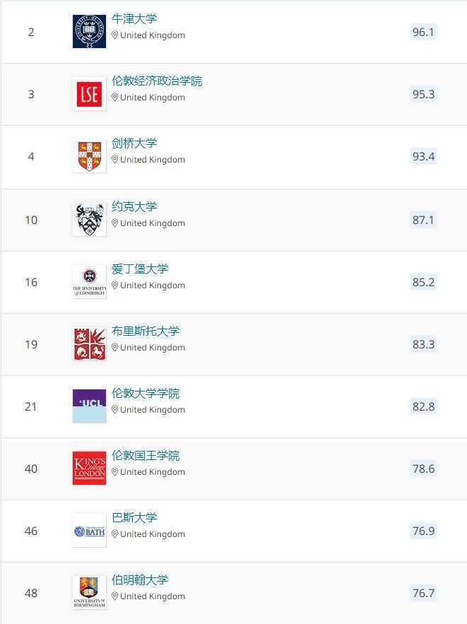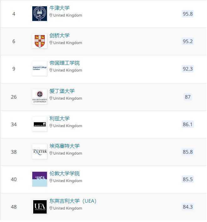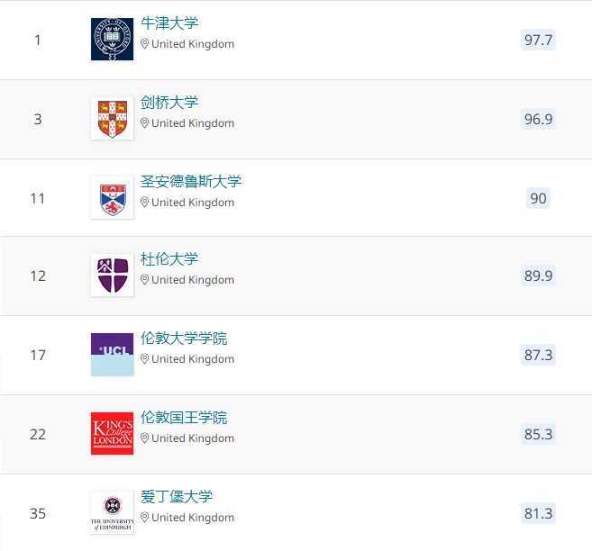 在48个细分学科排名中,英国大学在13个学科里排名世界第一,下面一起看看英国高校在这些学科的表现: