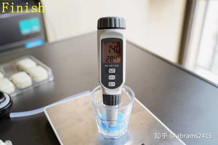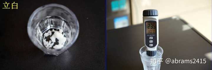 ▲简境5g机体清洁片在60mL温水中pH浓度3.46