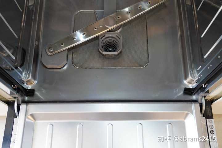 ▲家里这台10套洗碗机用了大半年没清洁过,不锈板内腔和滤网里面充满了油污。每次洗不干净餐具也正常
