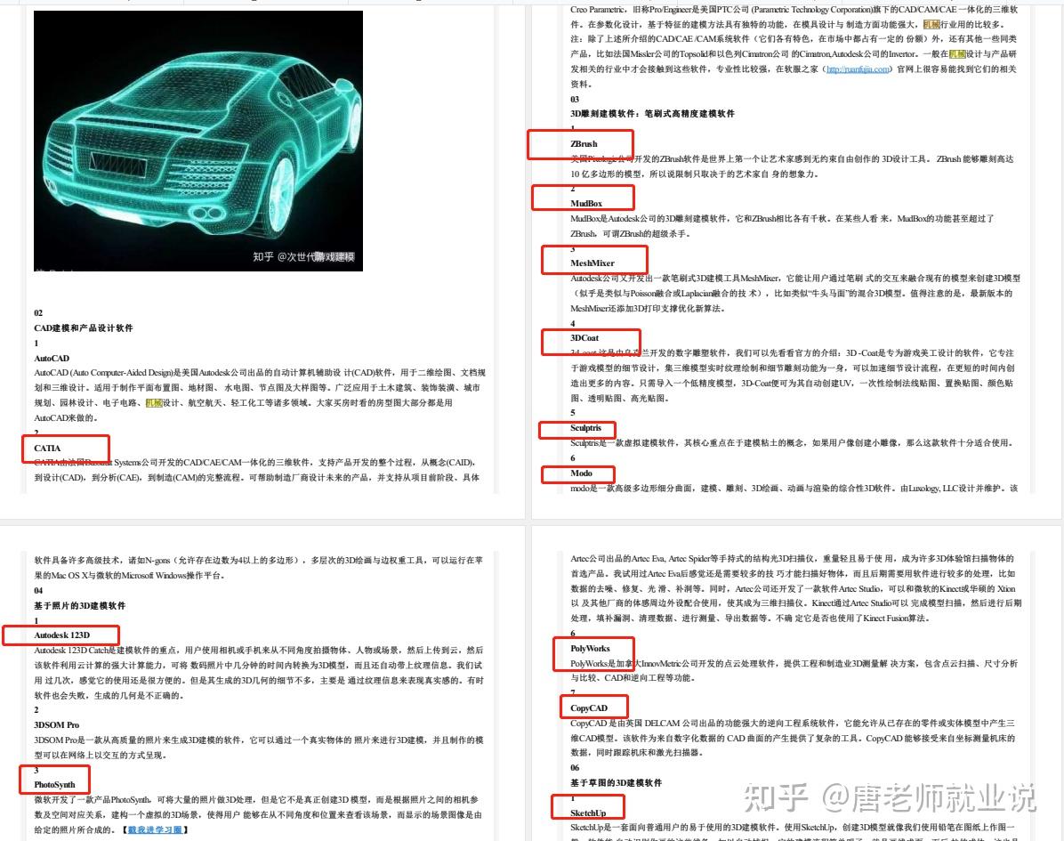 如果学生想要在汽车行业从事机械相关的工作,也可以详细整理