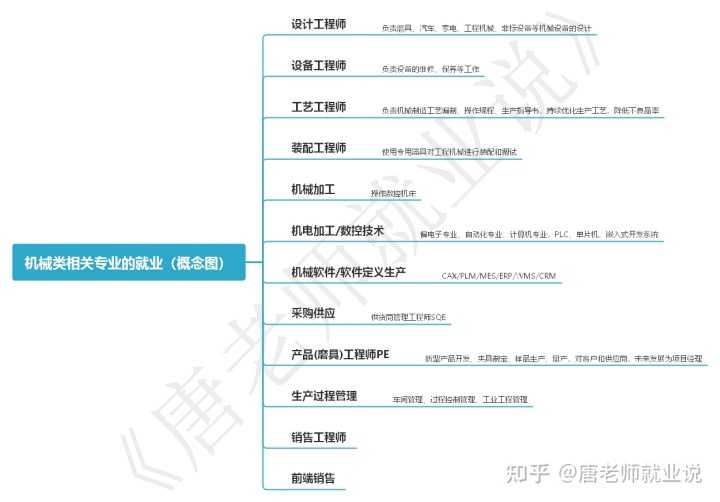 学生可以在机械行业从事的职业,也可以做一个简单的整理,如下图