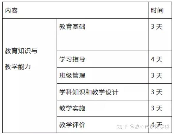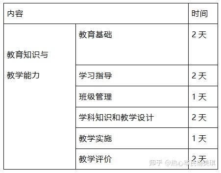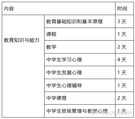 考试内容:《教育教学知识与能力》包括教育基础、学生指导、学校与班级管理、教学设计、教学实施、教学评价与反思六个模块。