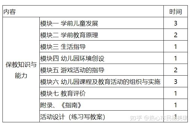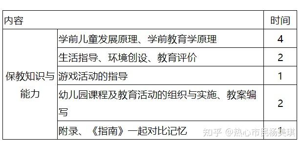 考试内容:《保教知识与能力》包含学前教育原理、学前儿童发展、生活指导、环境创设、游戏活动的指导、教育活动的组织与实施、教育评价。