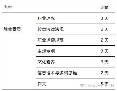 考试内容:《综合素质》包括职业理念、教师职业道德、教育法律法规、文化素养、基本能力五个模块。