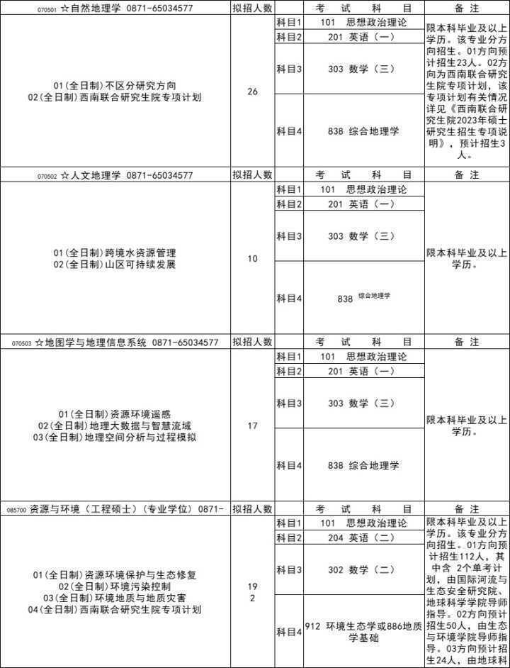 民族学拟招32人,扩招5人,设立西南联合研究生院专项计划。