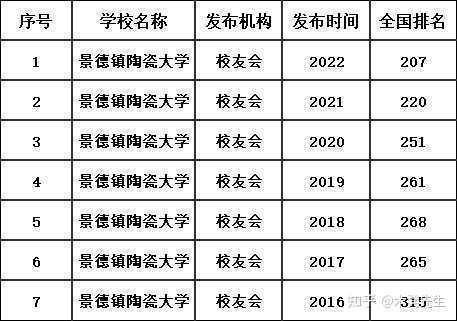 我们可以看到,景德镇陶瓷大学在校友会近6年的全国排名中,进步了100余名!并且,该校达到了全国高校排名200名左右的位次!