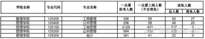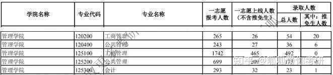 管理学院的学硕类专业是以一级学科直接招生,目前招生的专业有工商管理和公共管理这两个。毫无疑问,难度都很大,不管是一志愿还是调剂,录取分数都非常高。