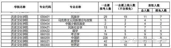 下面是近两年历史文化学院相关专业考研情况汇总: