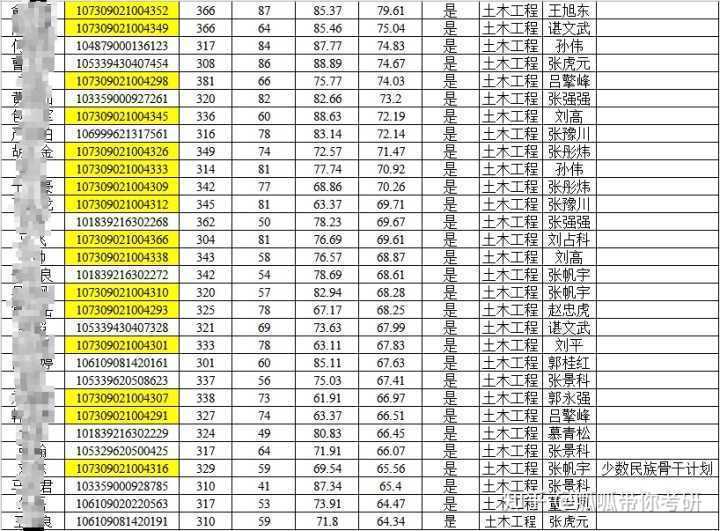 2019年兰大土木工程专业有93人报考,上线25人,最终拟录取了30人,其中一志愿录取了16人,包含1个专项计划录取,调剂录取了14人,一志愿普通统考拟录取最高分381,最低分304,平均分339。