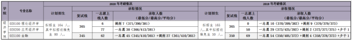 应用经济学历年招生相对多一些,同样的,报考热度也高很多。这个专业近两年基本上是一志愿录取,调剂录取考生很少,但另一方面一志愿考生的录取分数也是相当高的。整体上考研难度非常大。